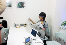 日本テレビ取材班の方々が、TOJOショールームで実証実験をされました。脳波を測定する機械を使って確認したところ、新聞を読んでいるときには検出しなかったシータ波が、アクアリウムを見ているときには検出することができました。